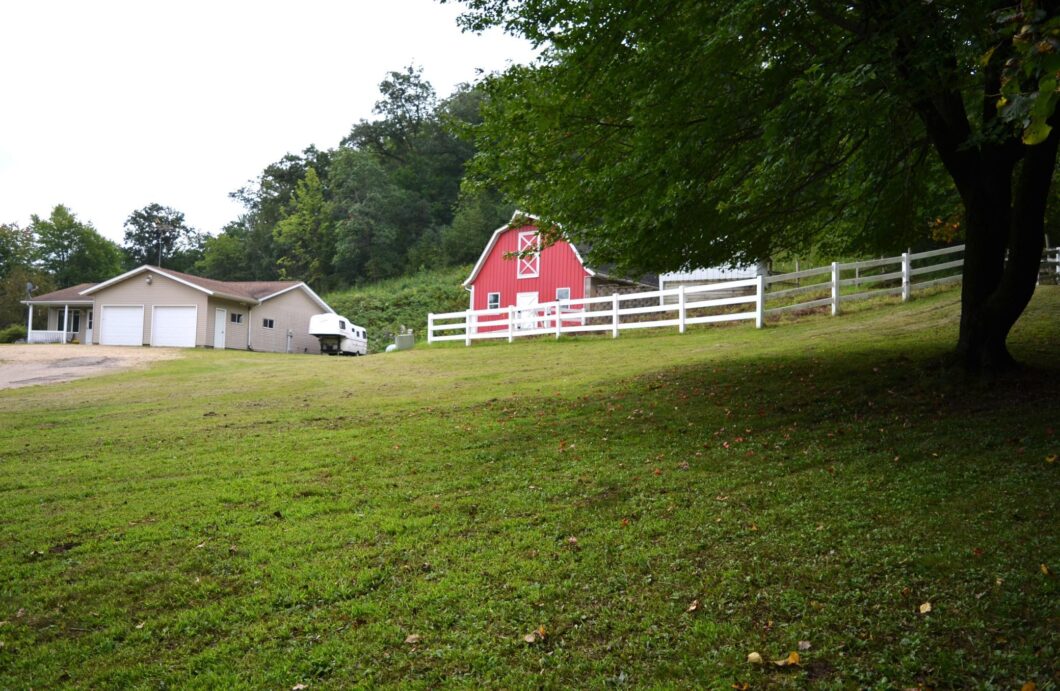 This rare opportunity is located adjacent to The Goodhue Pioneer Natural Surface Horse Trail! It features a barn with a stable and fenced corral. The ranch-style home is bright and open with new Hickory flooring and updated bathrooms. Enjoy acres of space and pastoral views from every window!